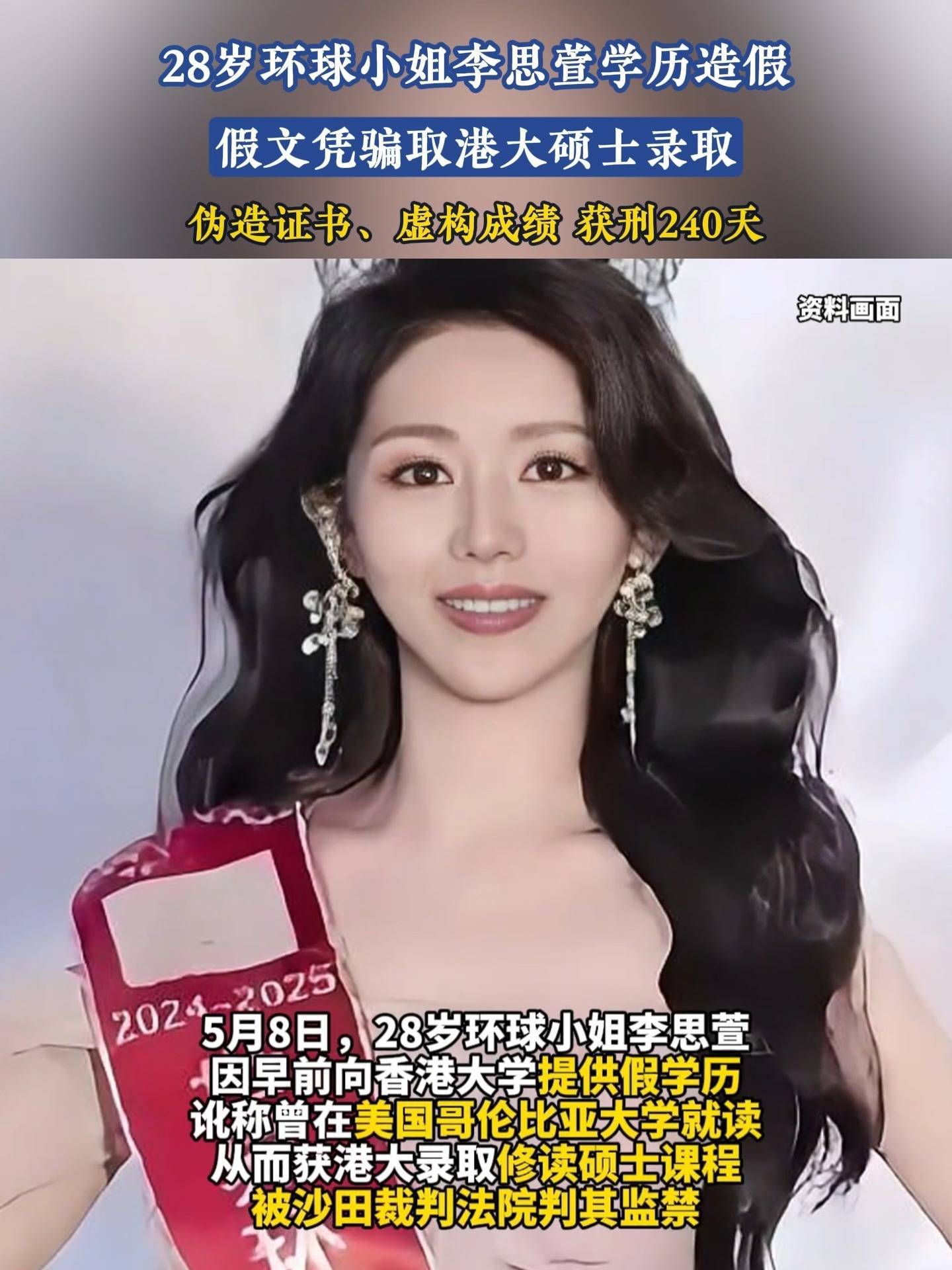 这场骗局的败露颇具戏剧性。2024年7月,李思萱刚顶着港大学生身份拿下环球小姐冠军,两周后就在校园里被入境处人员拦截。警方在她住所搜出一沓伪造文书,连港大毕业证都是高仿的。法官在庭审时怒斥她"持续性欺骗",从入学到毕业全程造假,最终两罪并罚判了240天。讽刺的是,她夺冠时还感谢父母"培养",如今这份"培养"成了法律意义上的共犯证据。 这件事撕开了学历造假产业链的冰山一角。帮她造假的合肥中介公司至今还在运营,他们不仅能仿冒名校文书,甚至传言能篡改学籍数据。网友们吵翻了天:有人骂她"美貌配不上野心",也有人反思"为什么娱乐圈非要拼学历"。但不管怎么说,李思萱用八个月牢狱之灾证明了一个理——假的终究长不了,就像她那本伪造的毕业证,阳光一照就现了原形。