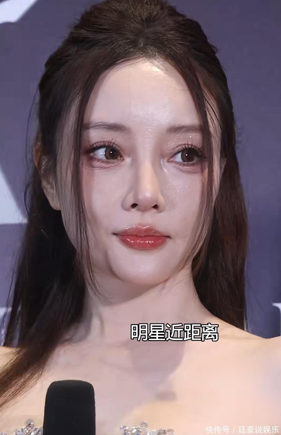 台下的怼脸生图更能看清楚李小璐的脸部细节。一方面她的皮肤状态非常好,几乎看不到什么“瑕疵”,完全不需要修图。而且脸比年轻时更饱满,额头、脸颊和下巴都是充盈的,所以看起来比同龄人显年轻。